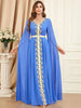 Das Kaftan Hochzeitskleid vereint traditionelle Eleganz mit modernem Glamour. Die zarte Hellblau-Farbe mit goldenen Stickereien verleiht diesem Kleid eine romantische und luxuriöse Ausstrahlung. Perfekt geeignet für Hochzeiten, Verlobungsfeiern oder festliche Anlässe, sorgt der fließende Schnitt für eine anmutige Silhouette, während das hochwertige Material höchsten Tragekomfort bietet. Mit diesem Hochzeits-Kaftan entscheiden Sie sich für ein Kleidungsstück, das Tradition und modernen Chic harmonisch verbindet und Sie an Ihrem großen Tag strahlend in Szene setzt.